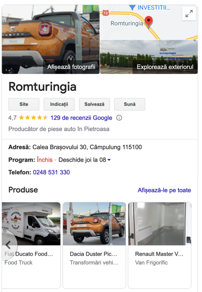 Afacerile cu profil activ în Google My Business au o reputație foarte bună pentru consumatori. Aceasta se datorează în mare măsură procesului de verificare cunoscut și riguros. Putem gestiona această procedură și completa profilul pentru a avea un scor maxim de credibilitate; asigurăm și actualizări constante ale profilului cu produse, servicii și articole.